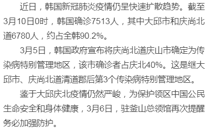 韩国:新冠疫情仍呈快速扩散趋势 驻釜山总领馆提醒加强防护