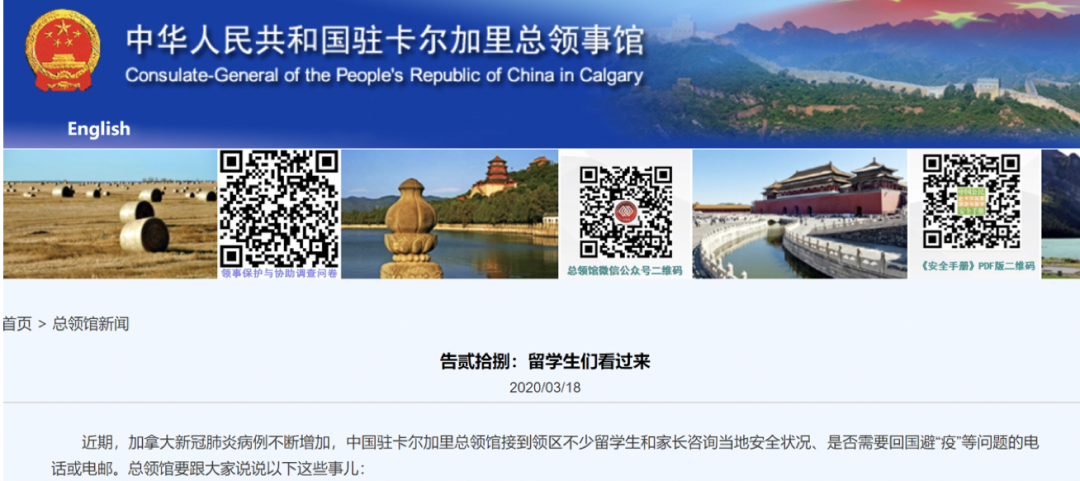 加拿大:驻加拿大大使馆致信留学生 呼吁保持信心和定力
