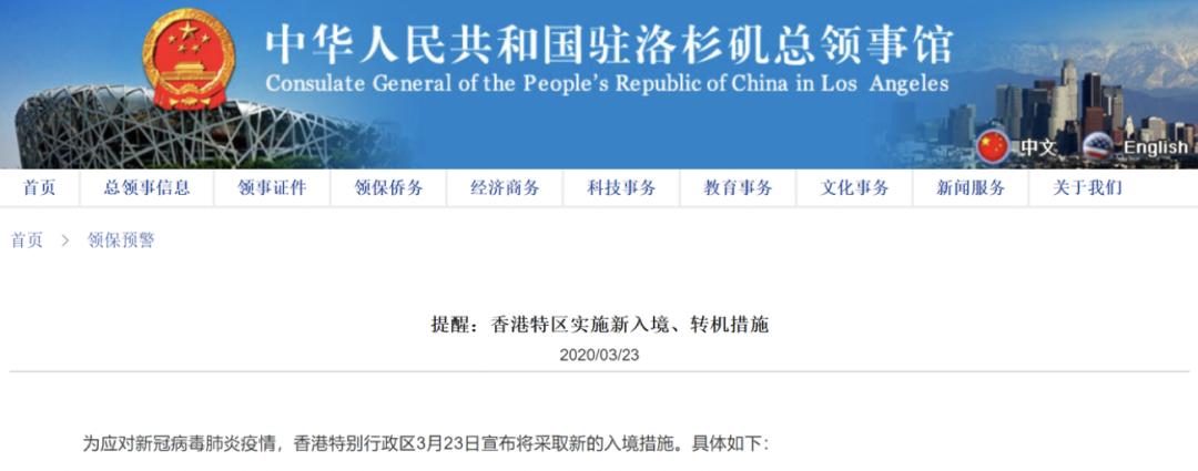 美国:驻洛杉矶总领馆提醒关注国内最新入境、转机措施
