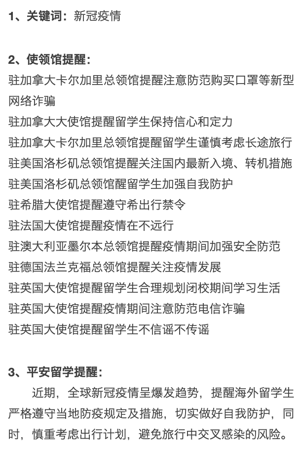中国留学生安全通报概要