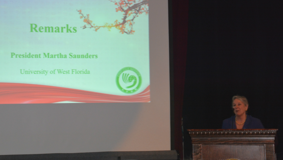 西佛罗里达大学玛莎·桑德斯校长发表讲话