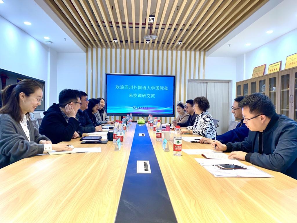 为聚焦学校国际化战略发展,学习兄弟院校在国际化建设方面的经验和做法,认真落实学校“十四五”发展规划工作部署,扎实有效地推进学校国际化进程,2021年3月25日,我校国际合作与交流处处长张幼斌,副处长朱天祥一行5人赴重庆工商大学、西南大学进行调研。重庆工商大学国际合作与交流处副处长(主持工作)张轶、副处长陈昌盛;西南大学国际合作与交流处副处长(主持工作)代远鸿、副处长陈炳君、张俊,国际学院党总支书记刘猛、院长刘承宇、副院长李航等热情接待了调研组一行。