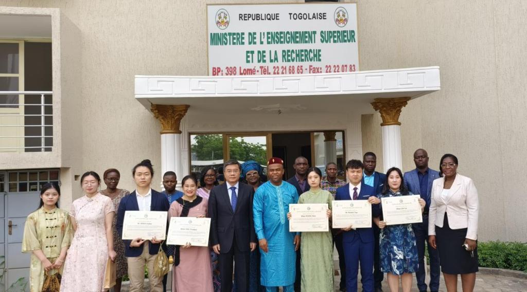 洛美当地时间1月5日,多哥高等教育与研究部授予洛美大学孔子学院五名中方人员荣誉证书,以表彰他们为多哥的汉语推广以及为中多文化交流所做出的贡献。中国驻多哥大使巢卫东、多哥高等教育部部长瓦特巴共同出席了颁奖典礼。