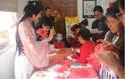 教师现场教学剪“春”花
