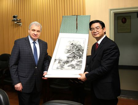 2013年12月24日,俄罗斯驻华大使杰尼索夫·安德烈·伊万诺维奇先生携夫人访问我校。李克勇校长在西区教学楼A204会议室亲切会见来宾,并对大使先生及夫人的到访表示热烈欢迎。