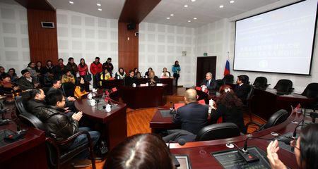 重庆市外侨办欧非处李明全处长、罗诗老师;学校国际合作与交流处副处长陈功;俄语系李小桃主任、杨俊书记、谢周副主任以及教师代表等分别出席相关活动。