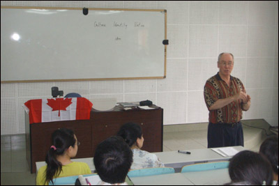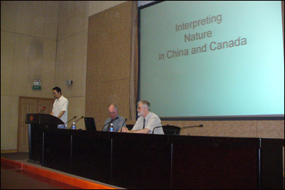 访问期间,加拿大教授分别与李建平副校长、蓝仁哲教授、冯光荣教授以及研究生部领导和学生代表进行了会谈,两校初步建立了一系列校际交流和学术交流项目的框架协议,两位加拿大教授还饶有兴致地到本科生和研究生的教室听课,并与老师和学生进行了文化交流。两位教授先后在综合楼教室和学术报告厅为学生做了四场精彩的学术报告,使学生对加拿大文化以及中加文化差异有了进一步的了解。6月14日,访问团与校教育技术中心合作进行了远程网上视频讲座的测试,进一步开拓了两校间学术交流的新领域。