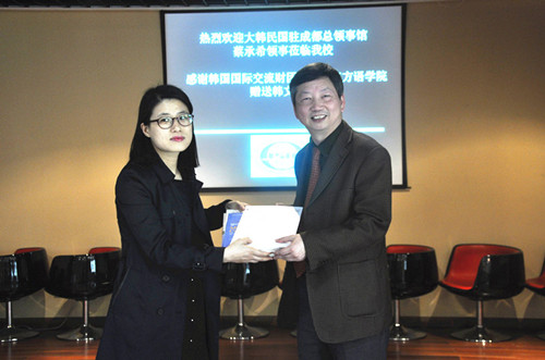 蔡承希领事代表韩国国际交流财团向我校捐赠韩语原版图书