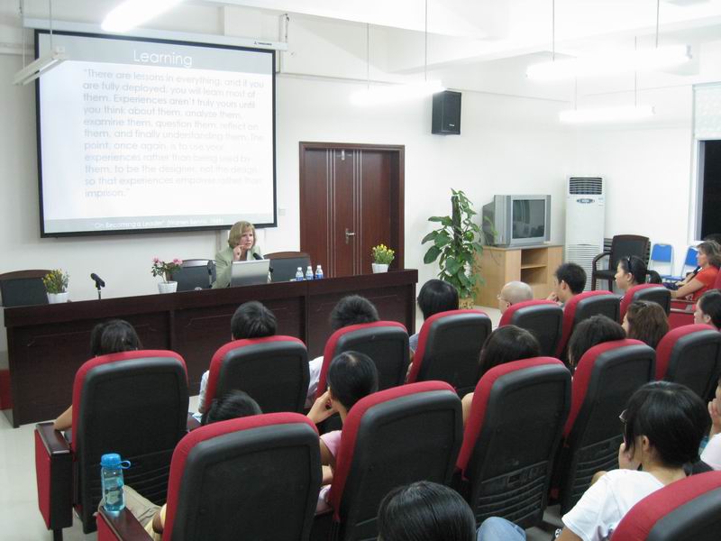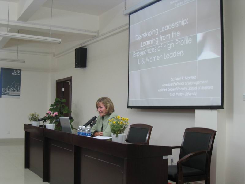 2008年9月25日,美国犹他山谷大学教授苏珊·麦德森博士访问我校。苏珊·麦德森博士在图书馆四楼学术报告厅为我校学生作了关于对美国女性领导研究的讲座。