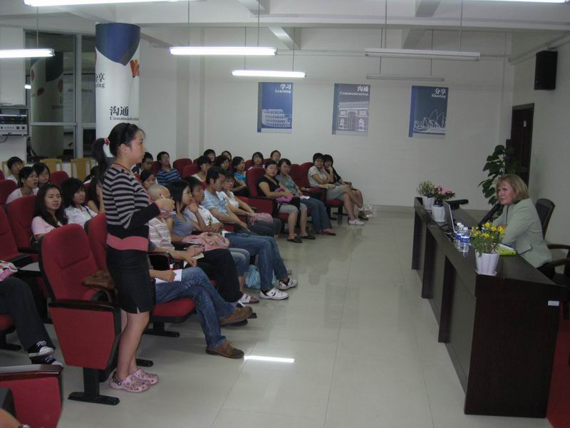 麦德森博士长期从事对美国教育界和政府中的女性领导的采访与研究。她在讲座中以详实的数据和采访故事说明了知识、管理能力、领导技巧、社会影响力等因素对美国女性领导所起的作用,详细介绍了女性从童年、青年至大学期间如何培养自己的领导才能。她的讲座为学生们带来了全新的感触,开拓了新的视野,受到同学们的热烈欢迎。