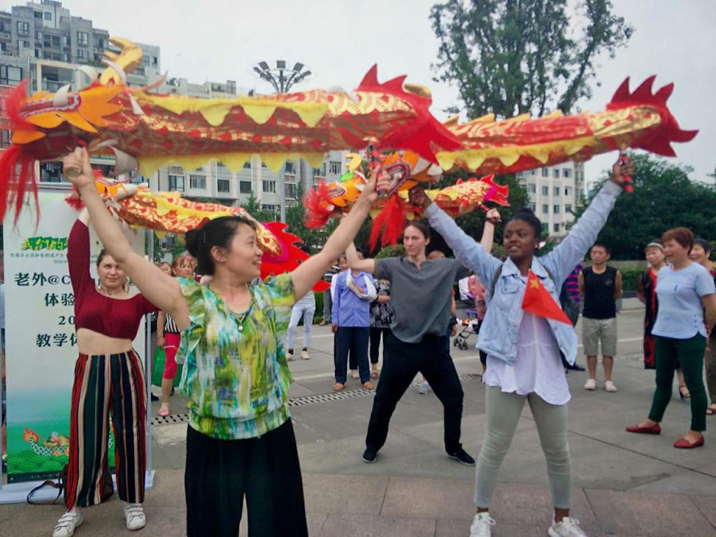 2019年6月6日上午,我校3名外教及23名留学生应邀参加由重庆市委宣传部、市文化和旅游发展委员会、巴南区委、区人民政府主办,在巴南区界石镇新界商街举行的“我们的节日·端午”——巴南区文化和自然遗产日·老外@ChongQing体验非遗2019活动。