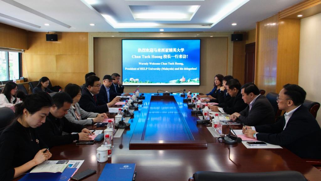 董洪川校长对陈德鸿校长一行来访表示欢迎。他简要介绍了学校的办学背景、师资力量、开设学科、办学宗旨等情况。他表示,我校高度重视国际合作交流,与国(境)外百余所高校开展了多形式多层次的合作项目,并利用这些交流平台传播中国声音,讲述中国故事。他提出,希望两校互为经验指导,相互取长补短,共谋国际化办学发展。
