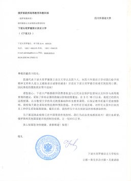 下诺夫哥罗德国立语言大学校长尼康诺娃发来的感谢信