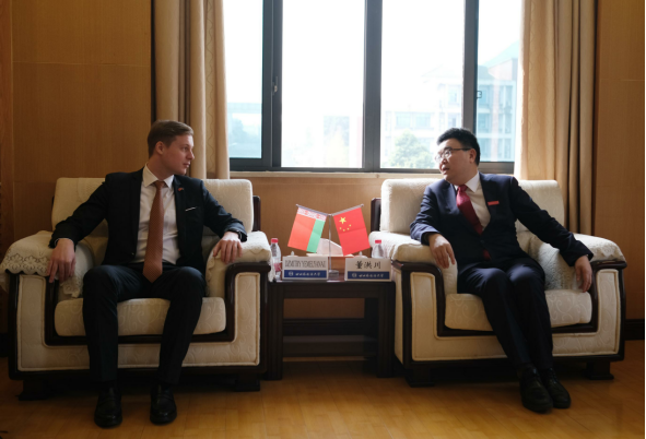 2022年3月10日上午,白俄罗斯共和国驻重庆总领事德米特里•叶梅利亚诺夫一行来访我校,我校校长董洪川会见来宾,国际合作与交流处、白俄罗斯研究中心相关人员出席。