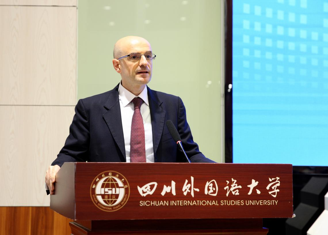 随后,毕岚祺总领事在宏文楼国际报告厅参加我校多语种外文门户网站上线发布会并作为外国驻渝领团团长致辞,期待川外多语种外文门户网站为重庆与意大利及世界各国搭建起沟通与交流的桥梁。
