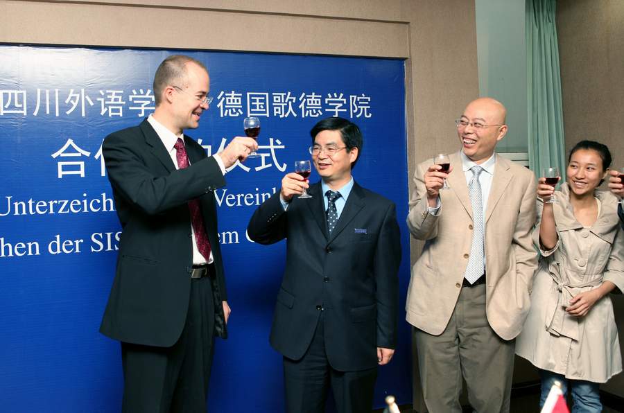 2008年10月22日,经过近半年的磋商洽谈,四川外语学院与歌德学院签署协议,合作建立歌德语言中心。