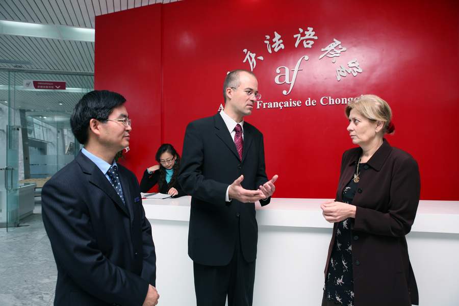 协议签署后,李校长陪同客人参观了设在我校的重庆法语联盟。