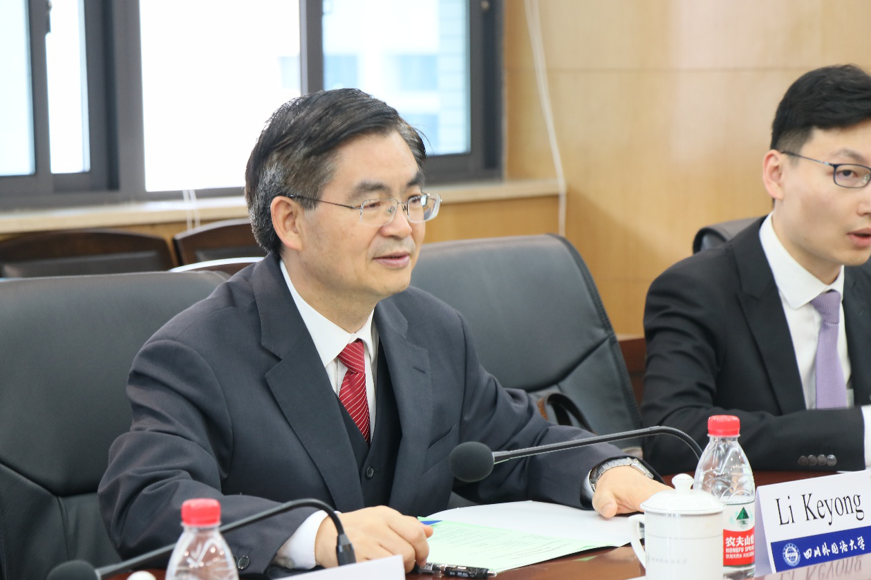 李克勇校长代表学校对下语大代表团一行表示热烈欢迎,他充分肯定了孔子学院取得的成绩。希望通过孔子学院平台,加深川外与下语大的合作与交流。