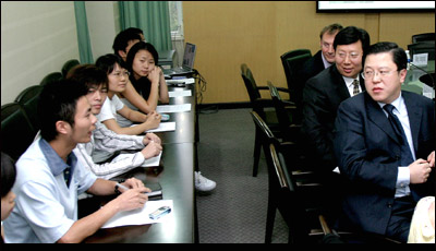 2006年6月1—4日美国惠普公司亚太区副总裁Samuel Hur先生一行来我市考察选定HP业务流程外包中心地址,我校是这次代表团考察的四所高校之一。2006年6月3日,美国惠普公司亚太区副总裁Samuel Hur先生一行6人在重庆市信息产业局副局长罗德的陪同下到我校,主要了解我校专业构成、课程设置、学生就业去向等信息。
