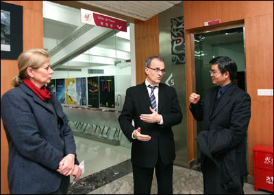 罗克嘉先生兴致勃勃地参观了落户我校的重庆法语联盟,对重庆法语联盟在短时间内取得可喜成绩给予了高度评价。罗克嘉先生在留言薄上写道,法语联盟取得如此佳绩,是因为拥有四川外语学院作为合作伙伴,他对川外人付出的努力表示衷心的感谢,相信在重庆这个大城市里,法语联盟一定会有更好的发展前景。