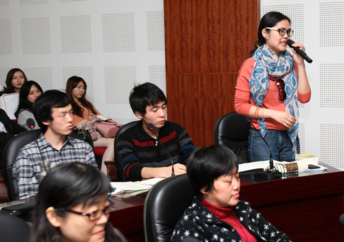 随后,魏雅树总领事一行前往西区教学楼A栋2-1会议室与我校学生举行见面会。见面会气氛融洽,同学们纷纷踊跃发言。魏雅树总领事分别就同学们提出的关于中法关系、中法文化交流、如何制定留法学习计划等问题予以详细解答。此外,他向同学们推荐了法国驻华大使馆的优秀硕士奖学金项目,希望同学们踊跃申请。法国驻成都总领事馆科技与教育合作专员李凤兰(Violaine Leloup)女士就同学们关于如何办理签证等提问作了补充回答。
