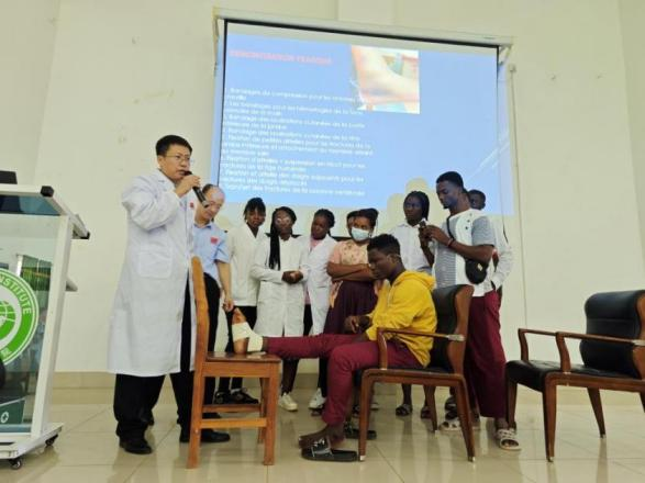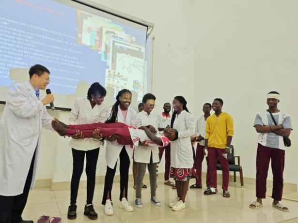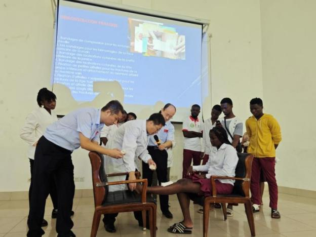 当地时间6月13日,中国(山西)第25批援多哥医疗队走进洛美大学孔子学院,为孔院师生带来了以“运动损伤及防治、创伤急救”和“心肺复苏”为主题的科普讲座。孔子学院中方院长朱玉珊,洛美大学医学院院长达黑、中国(山西)第25批援多哥医疗队、医学院博士生代表、洛大孔院全体师生共计300余人参加了本次活动。