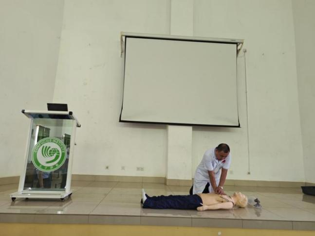 随后杨坚医生做了“心肺复苏”主题讲座。他细致地讲解了心肺复苏的基本原则、方法与步骤,让大家对心肺复苏有一个基础的了解。理论授课结束后,杨坚医生还利用“模拟人”进行心脏复苏抢救操作演示,并对各项操作要领进行了示范。