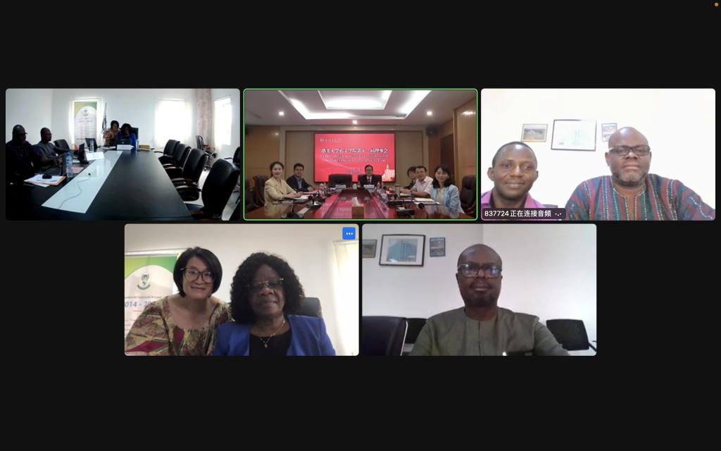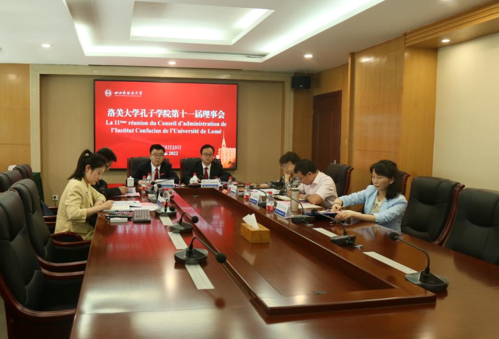 5月23日下午,洛美大学孔子学院第十一届理事会以视频会议的方式在西区立德楼A301会议室举行。洛美大学第二副校长贝芭(K.A.Kpegb)、国际处处长赛科飞(G. K. K.Ketoh)、洛美大学孔子学院外方院长艾布多(M. T. Aboudou),我校校长董洪川、副校长祝朝伟、国际合作与交流处处长张幼斌、计划财务处处长于全辉、洛美大学孔子学院中方院长朱玉珊出席会议。国际合作与交流处副处长朱红、综合科科长杨夏列席会议。会议由祝朝伟主持,法语学院教师葛长义担任翻译。