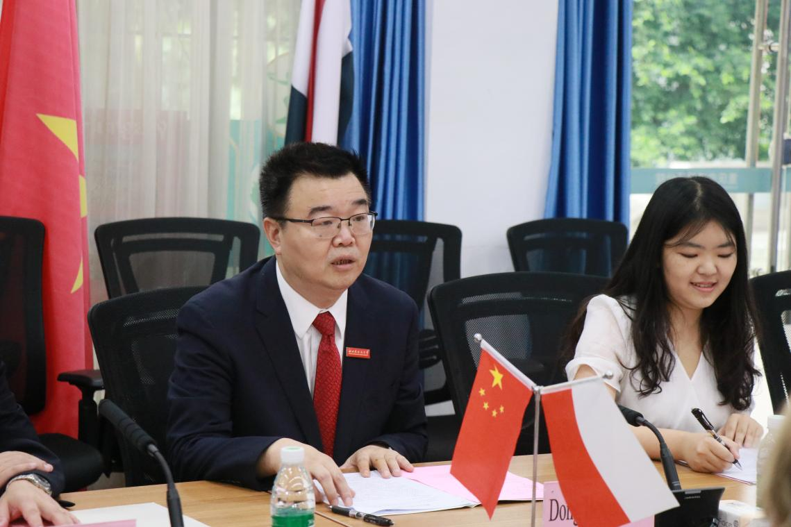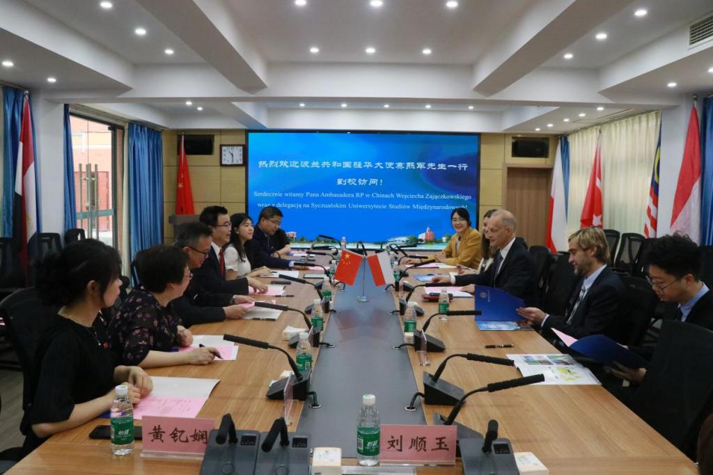 会上,董洪川校长对赛熙军大使一行的到访表示热烈欢迎。他从建校历史、学科专业、办学层次及国际合作等方面介绍了我校的基本情况。他着重讲述了波兰语专业的建设情况与成果,并表达了加强我校与波兰高校间师生交流合作的意愿。