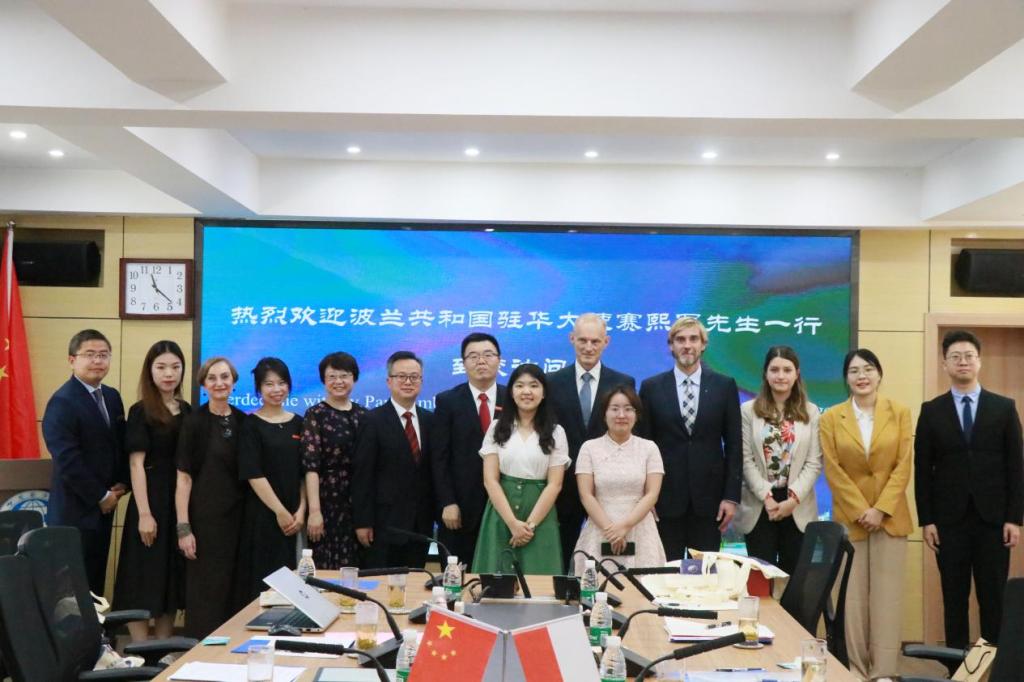 6月12日上午,波兰驻华大使赛熙军一行来访川外。我校校长董洪川、副校长祝朝伟在东区文轩楼103会见来宾,国际合作与交流处张幼斌处长、西方语言文化学院谌华侨副院长、温晓静副院长、重庆市人民政府外事办公室欧非处干部金哲等参与接待。