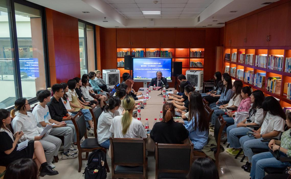 塞尔希奥·卡夫雷拉对学校的热情接待表示感谢,他指出此次访问川外旨在加强既有合作,探讨新的合作模式。他表达了希望通过各类型奖学金项目推动中哥学生的双向交流,与川外开展科研活动助力哥伦比亚高校教师赴华进行学术交流以及在哥伦比亚设立新的孔子学院等合作意向。