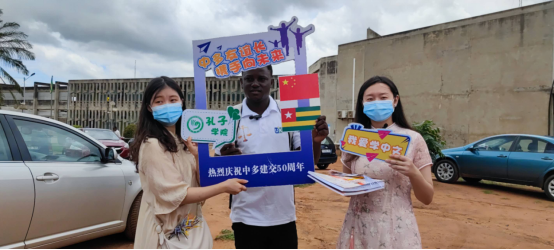 为纪念中国和多哥建交50周年及孔子学院成立13周年,当地时间9月27日,洛美大学孔子学院在洛大校园开展了以“亲近汉语,对话世界”为主题的快闪活动,活动主要以街头随机采访的方式进行,孔院全体在岗教师和教职工参加了活动。