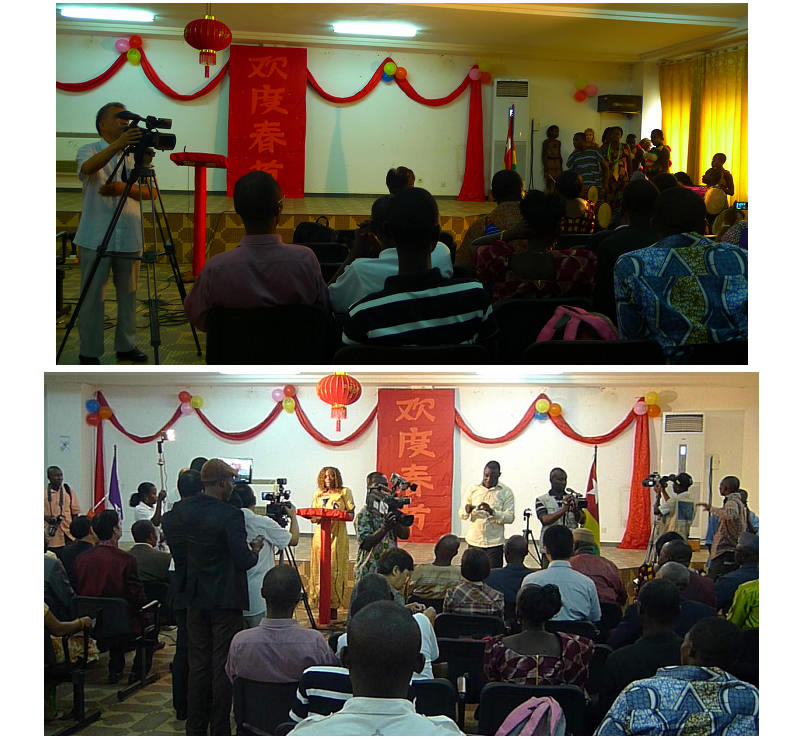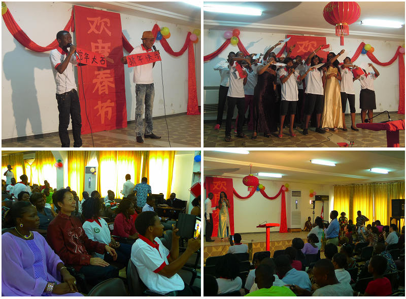 金蛇狂舞气象新,孔院师生喜迎春。2013年2月8日,与我校共建的多哥洛美大学孔子学院在南校区礼堂举行了蛇年新春联欢会。中国驻多哥使馆王作峰大使、洛美大学校长诺努(NONOU)、经商处胡平参赞、多位前政府部长、部分华人代表、洛美大学有关院系领导和部门负责人等200多人出席此次春节联欢活动。