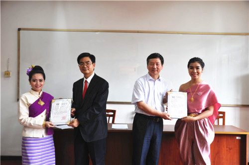清迈皇家大学交换生向我校赠送礼物.