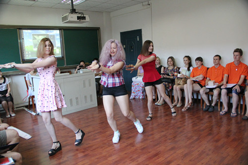 结业典礼之后,学员们进行了汇报演出,演唱了中文歌曲《再见》、《在我的歌声里》、《茉莉花》,朗诵了古诗《静夜思》,一首《莫斯科郊外的晚上》更让现场气氛达到高潮。京剧《苏三起解》、黄梅戏《天仙配》这些节目更充分展示了学生们汉语学习成果,赢得了校领导和到场嘉宾们的热烈掌声。