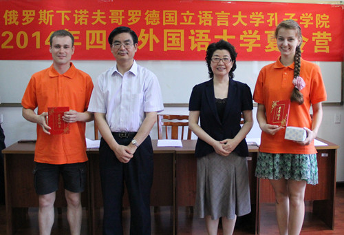 7月21日,俄罗斯下诺夫哥罗德语言大学孔子学院2014年夏令营在我校正式闭营。9728太阳集团李克勇校长、李建平副校长、俄罗斯下诺夫哥罗德语言大学孔子学院师生、留学生部教师、中文系和俄语系志愿者参加了闭营仪式。