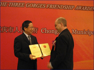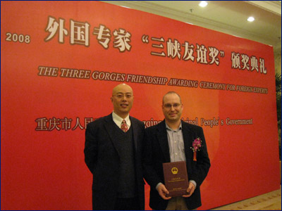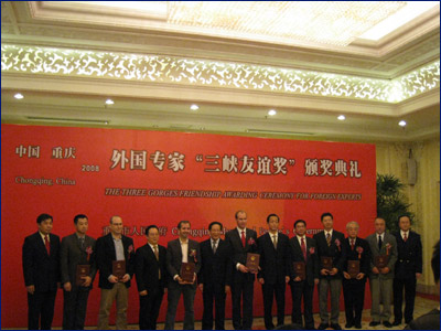 2008年12月22日下午,“重庆市2008年外国专家三峡友谊奖颁奖典礼”在重庆雾都宾馆隆重举行。我校德国籍教师Frank Ristow(李复)先生喜获重庆市政府颁发给在渝外籍人士的最高荣誉“三峡友谊奖”。