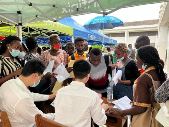 On July 8, local time, hosted by the Chinese Embassy in Togo, a joint recruitment fair was successfully held by the China International Cooperation Association of Small and Medium Enterprises(CICASME), World Chinese Union General, and the Chinese Confucius Institute at University of Lomé, with 12 Chinese enterprises participating in the on-site recruitment. Positions offered in the fair were nearly 200, including public administration, translation, sales, etc., covering hotels, construction, agriculture, household products and other fields, which attracted hundreds of people to consult and applyfor.